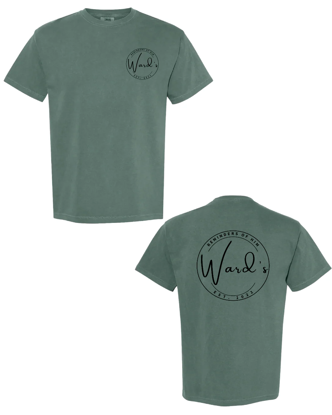 Green Comfort Colors, unisex relaxed fit short sleeve tee. Printed front and back graphics. 100% ring spun cotton. Preshrunk, soft-washed, garment-dyed fabric.